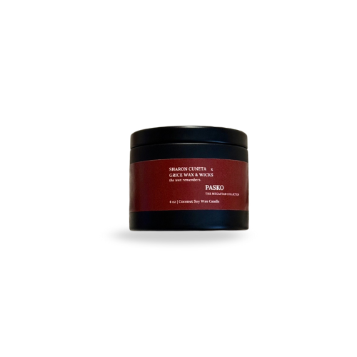 Experience Pasko, a Filipino-inspired luxury holiday candle from the Sharon Cuneta x Grice Wax & Wicks Megastar Collection. Hand-poured in small batches using eco-friendly coconut soy wax, natural wooden wicks, and premium fragrance oils, this limited-edition 4 oz travel candle brings the comforting glow of home wherever you go.